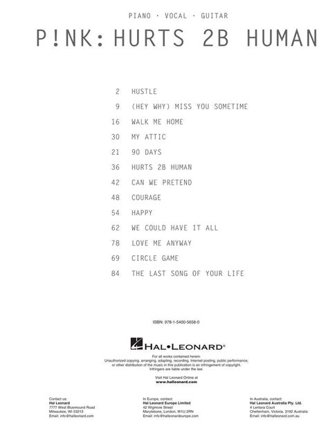 Download Pink - Hurts 2b Human Songbook Epub Gutenberg